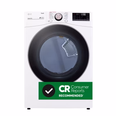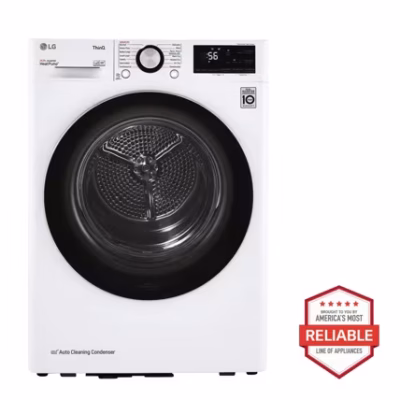 LG 27英寸宽 7.8 立方英尺 超大容量 智能前开式干衣机(配备双变频 HeatPump™ 热泵技术与变频直驱电机系统)- 白色款 DLHC5502W